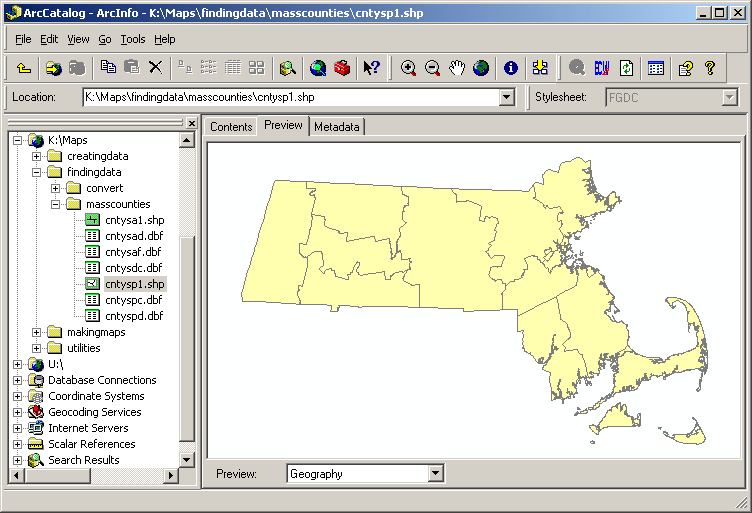 g. Locate C:\Maps\findingdata\masscounties\cntysp1.shp;