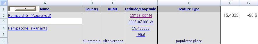 cell references to the latitude and longitude